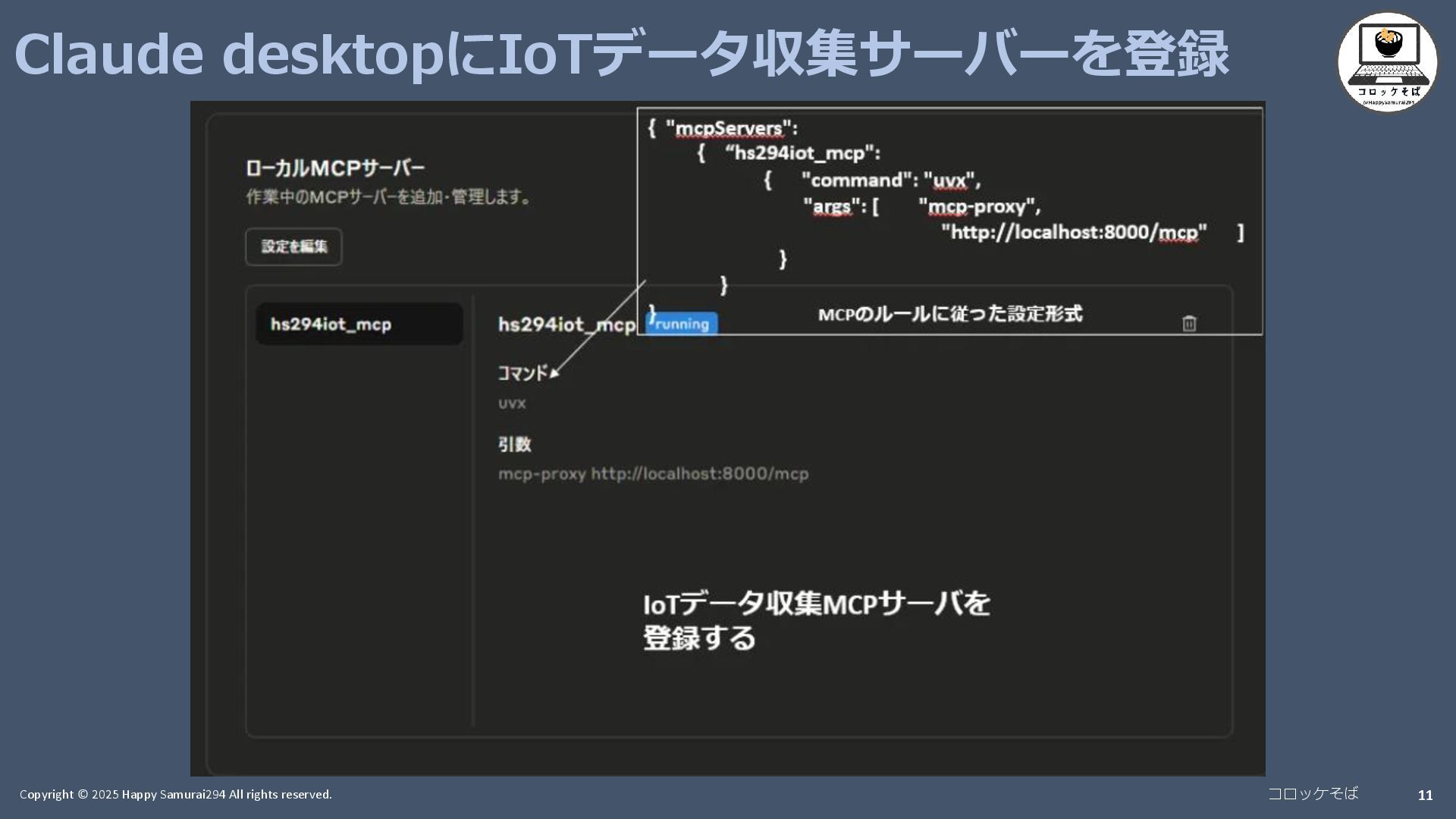 11 11 11 Claude desktopにIoTデータ収集サーバーを登録