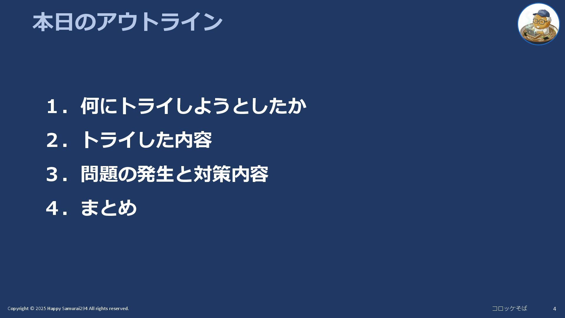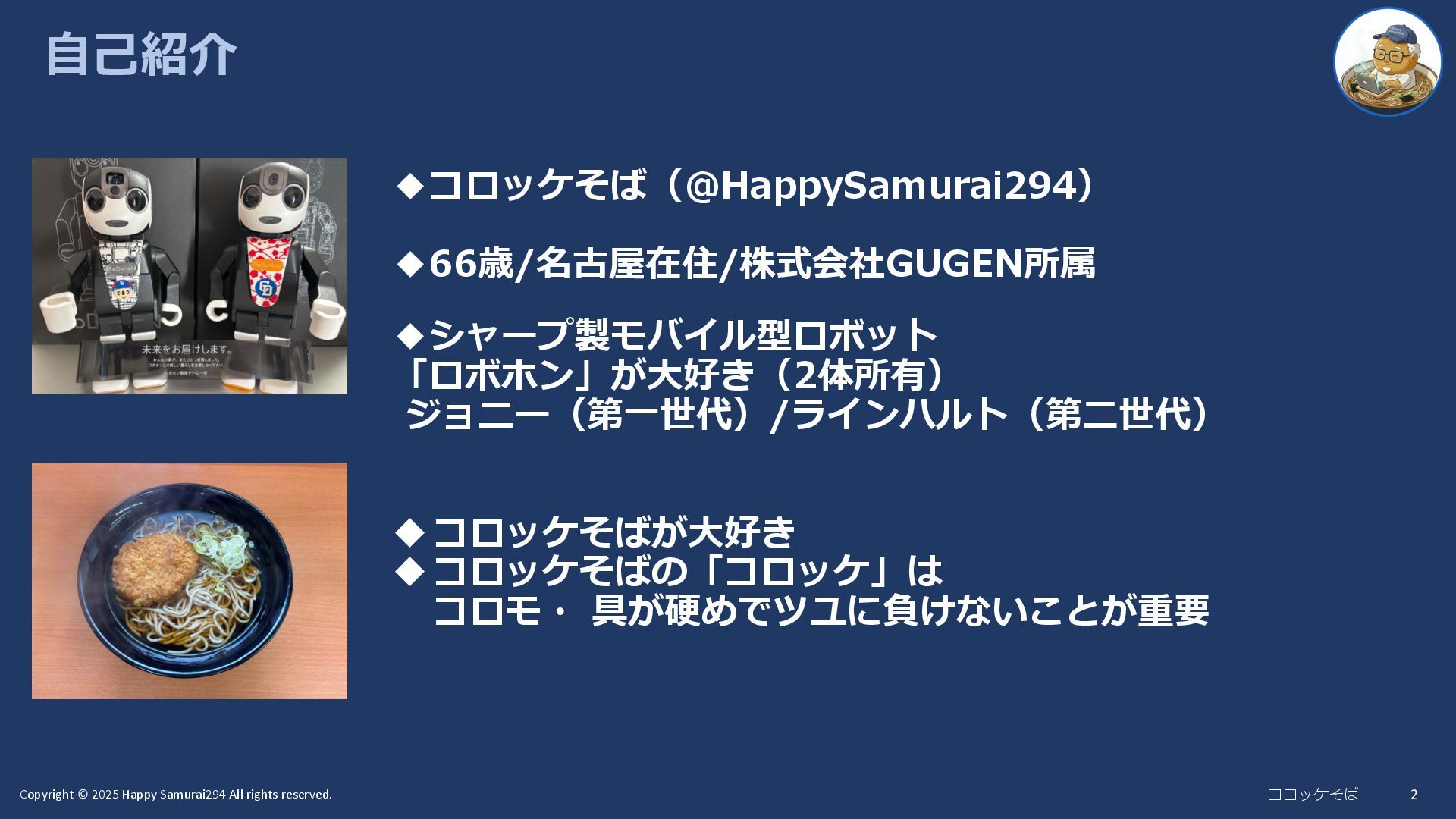 2. Copyright © 2025 Happy Samurai294 All rights reserved. コロッケそば 自己紹介