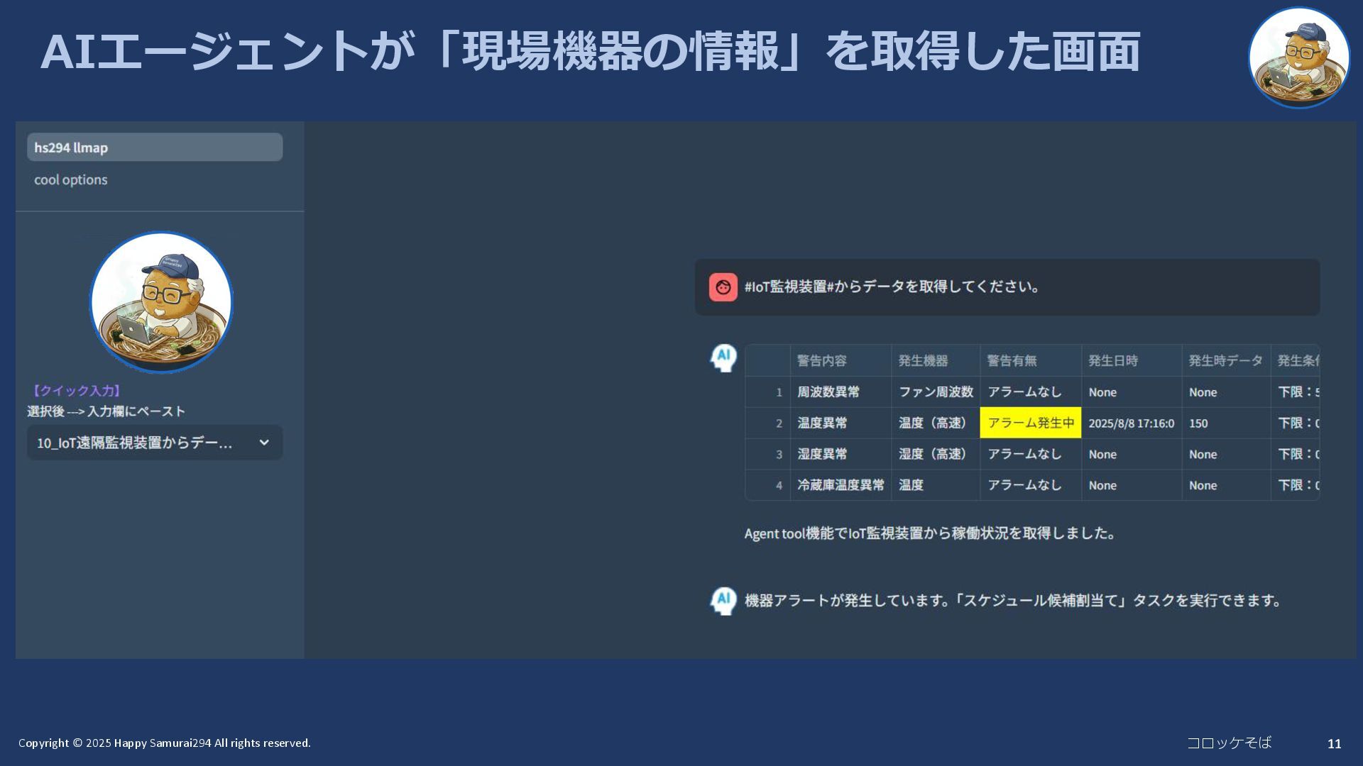 11 AIエージェントが「現場機器の情報」を取得した画面
