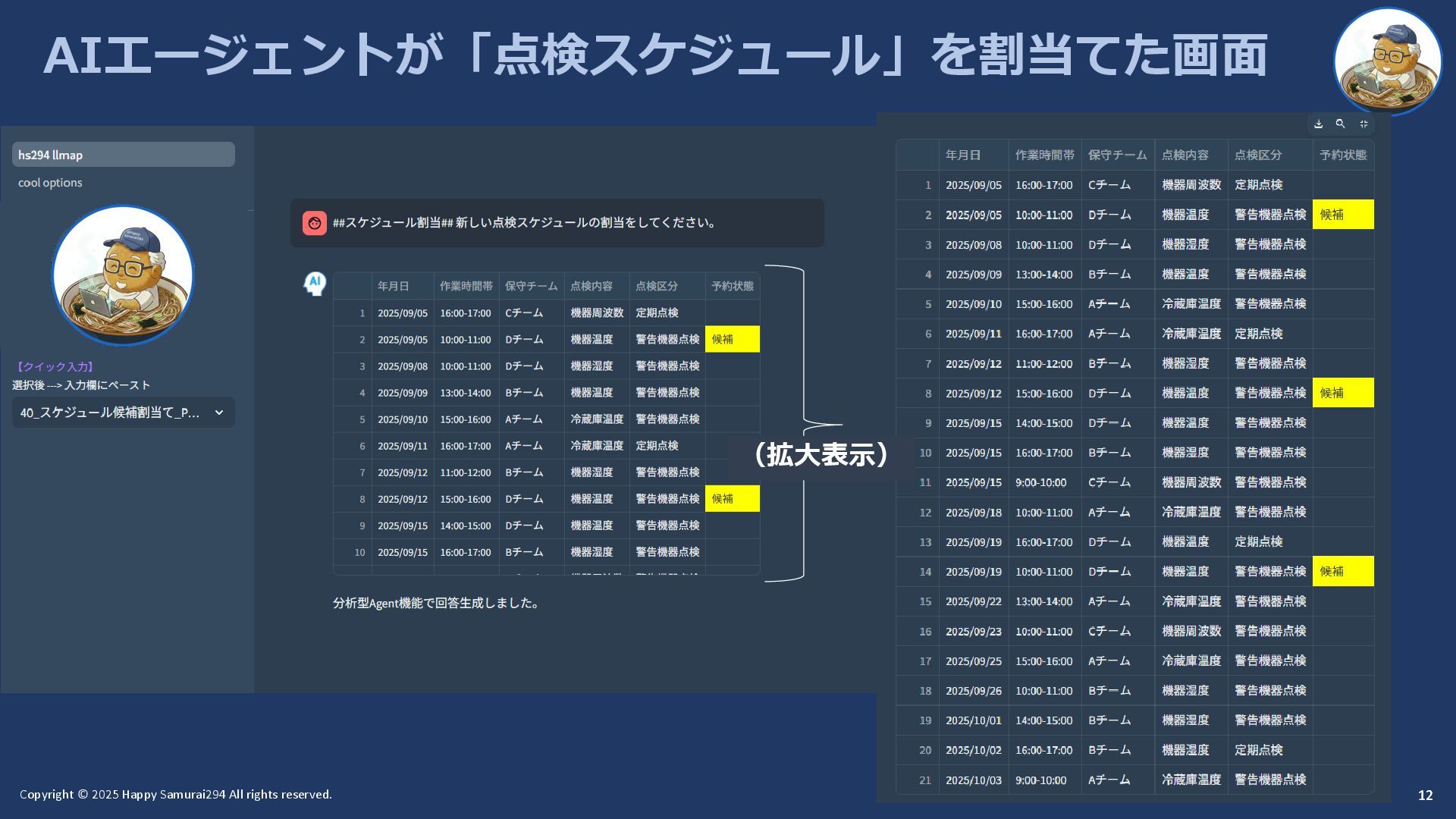12 AIエージェントが「点検スケジュール」を割当てた画面 12 (拡大表示)