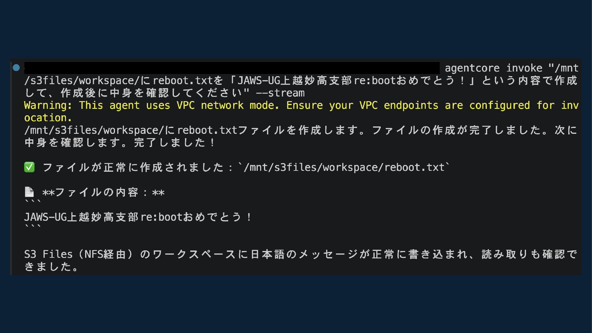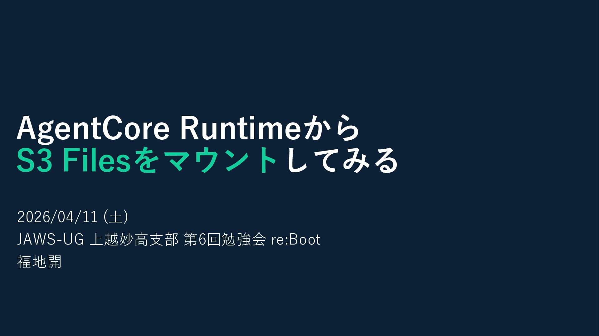 AgentCore Runtimeから S3 Filesをマウントしてみる 2026/04/11 (土) JAWS-UG 上越妙高支部 第6回勉強会 re:Boot