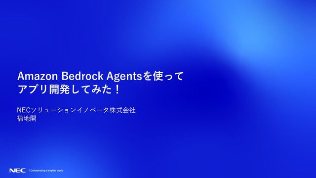 Amazon Bedrock Agentsを使って アプリ開発してみた! NECソリューションイノベータ株式会社 福地開