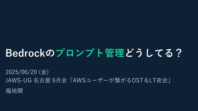 Bedrockのプロンプト管理どうしてる? 2025/06/20 (金) JAWS-UG 名古屋 6月会「AWSユーザーが繋がるOST&LT夜会」 福地開