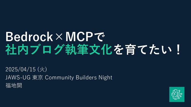Bedrock×MCPで 社内ブログ執筆文化を育てたい! 2025/04/15 (火) JAWS-UG 東京 Community Builders Night 福地開
