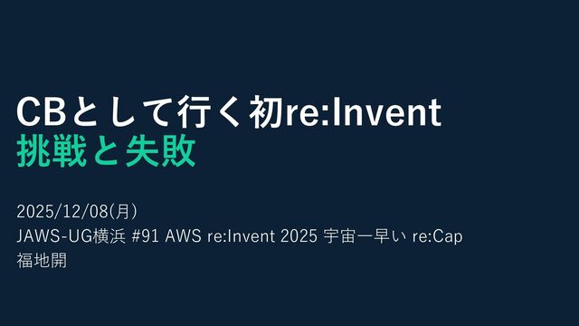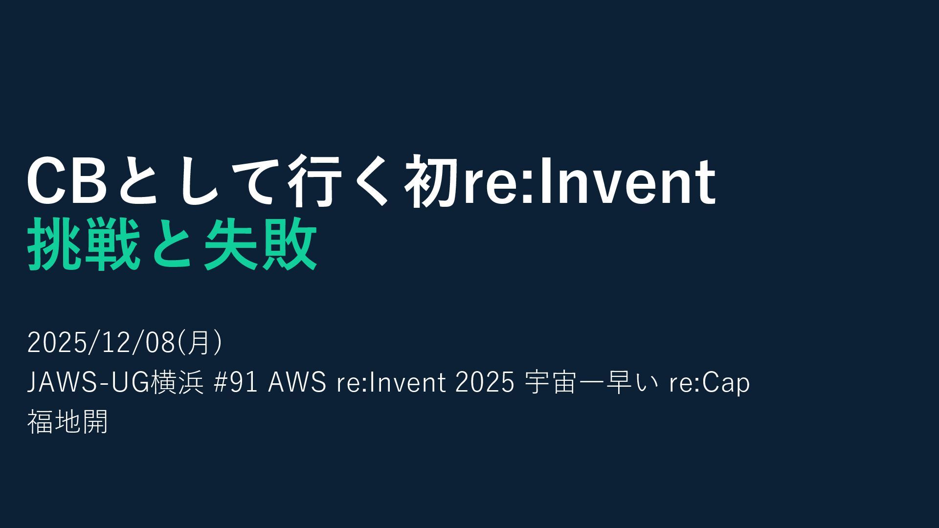 CBとして行く初re:Invent 挑戦と失敗 2025/12/08(月) JAWS-UG横浜 #91 AWS re:Invent 2025 宇宙一早い re:Cap