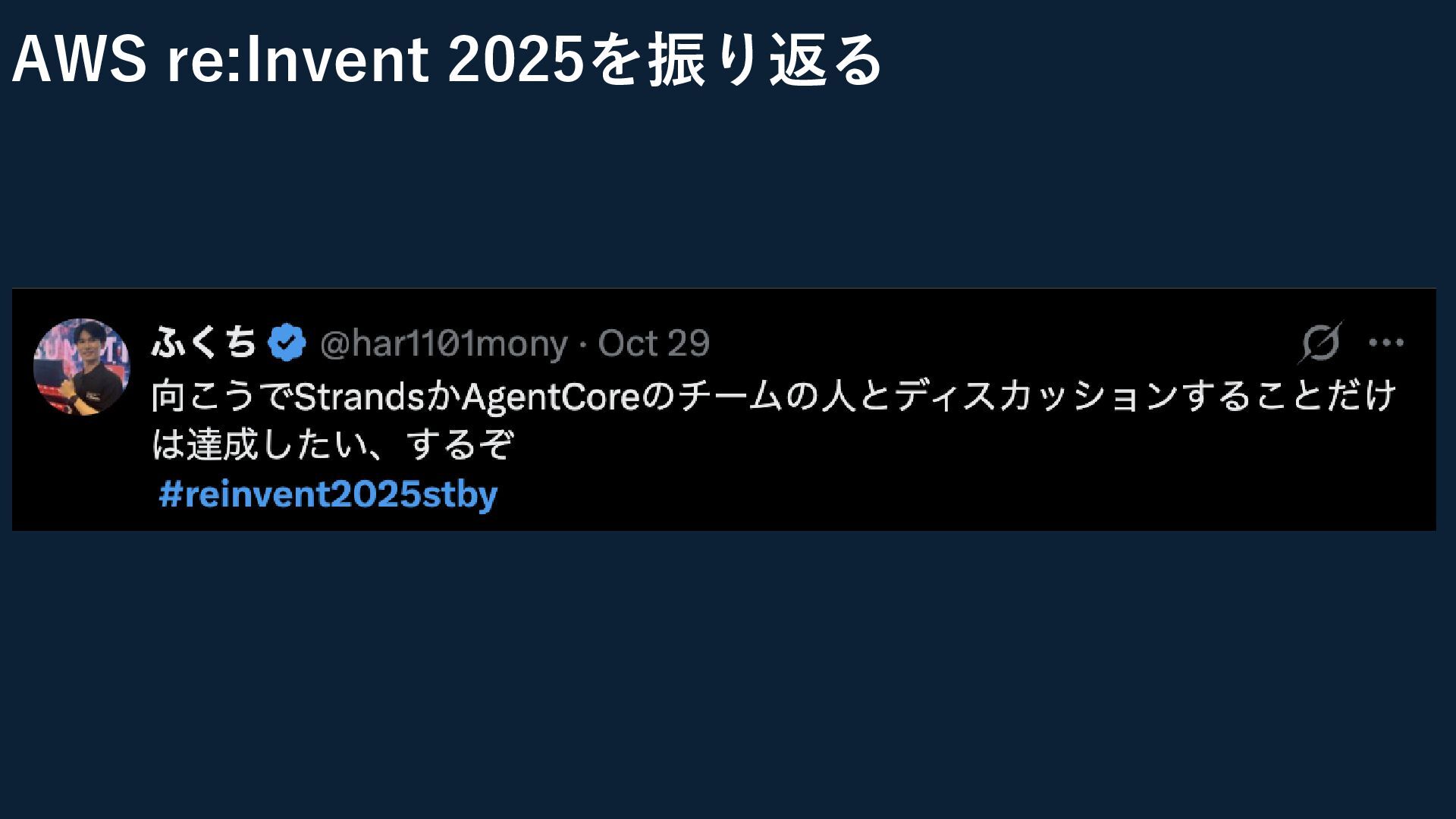 :Share your lessons – Dr.Werner Vogels(2024 Keynote) • 今年の振り返り:来年に活かす – Mr.Shintaro Fukatsu(#reinvent2025stby) まとめ