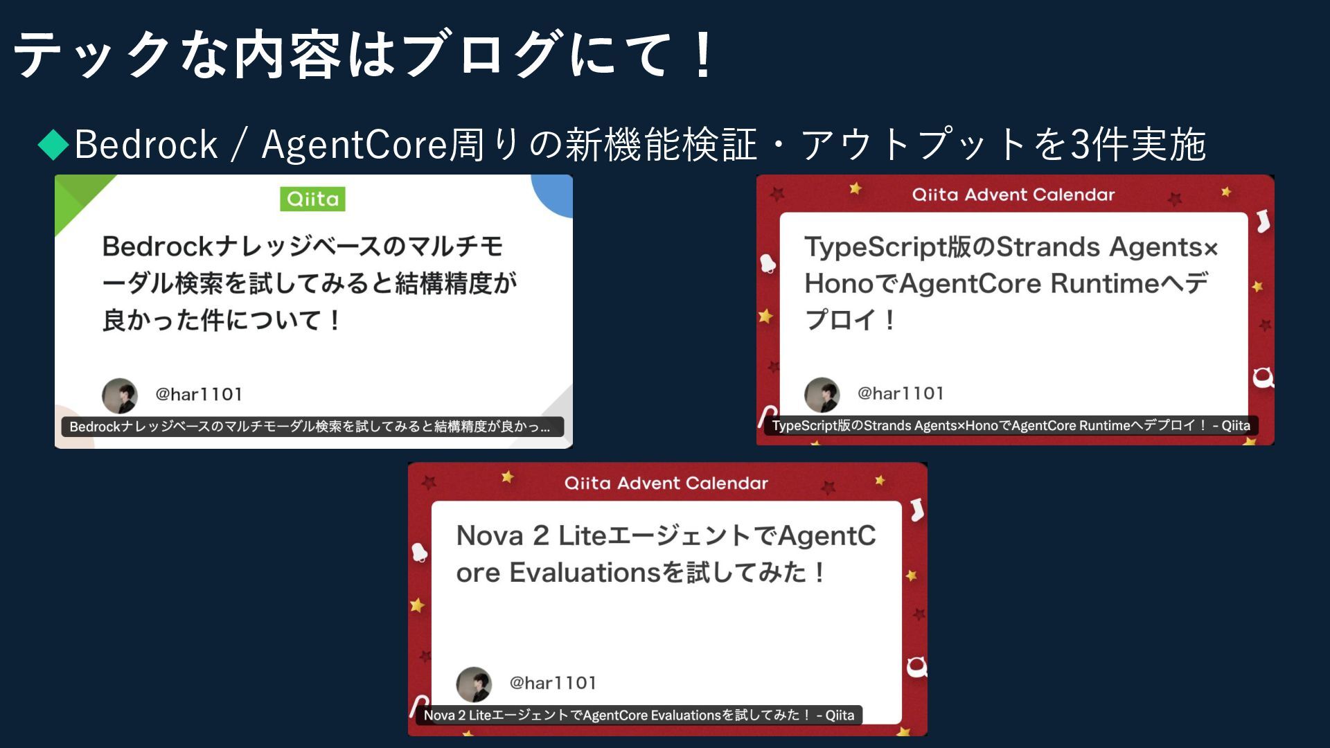 テックな内容はブログにて! ◆Bedrock / AgentCore周りの新機能検証・アウトプットを3件実施