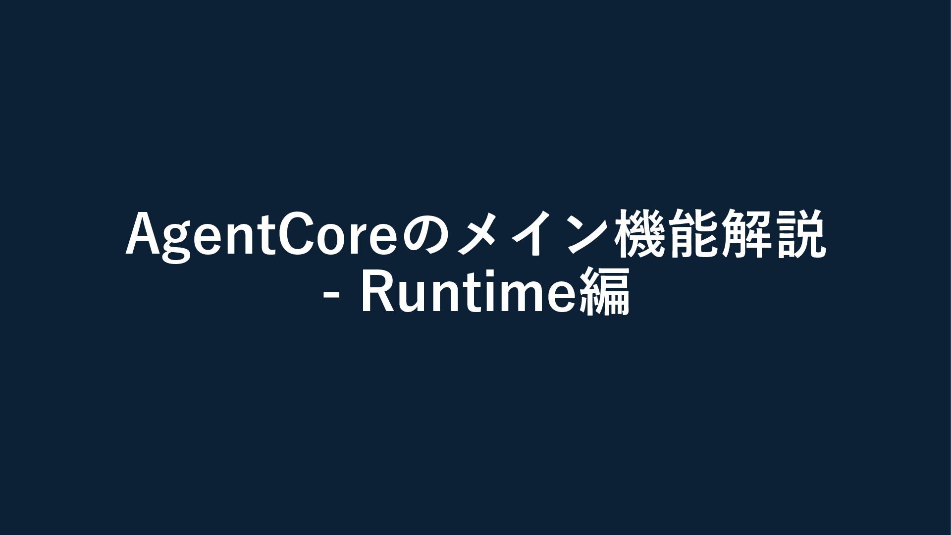 AgentCore Runtime とは ◆AIエージェント(およびツール)のコードをホストする基盤(≒Lambda) • サーバーレスにスケール可能なコンテナ基盤 • セッションごとにマイクロVMを立ち上げてくれるので、 簡単に実行環境を隔離することが可能 •
