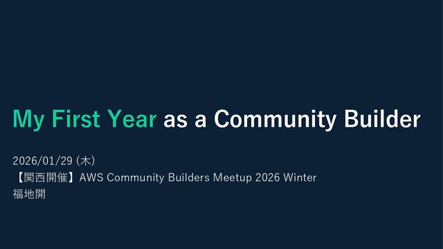 My First Year as a Community Builder 2026/01/29 (木) 【関西開催】AWS