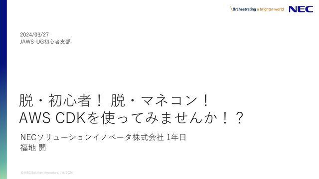 NECソリューションイノベータ株式会社 1年目 福地 開 2024/03/27 JAWS-UG初心者支部 【NECグループ外秘】 【NEC Group Internal Use Only】