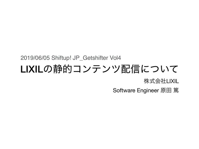 LIXILͷ੩తίϯςϯπ৴ʹ͍ͭͯ גࣜձࣾLIXIL Software Engineer ݪా ಞ 2019/06/05 Shiftup! JP_Getshifter