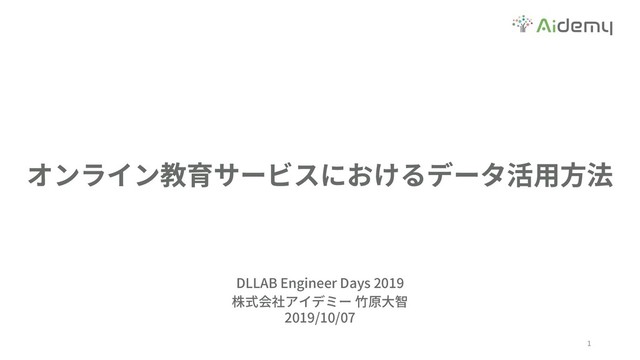 オンライン教育サービスにおけるデータ活⽤⽅法 1 DLLAB Engineer Days 2019 株式会社アイデミー ⽵原⼤智 2019/10/07