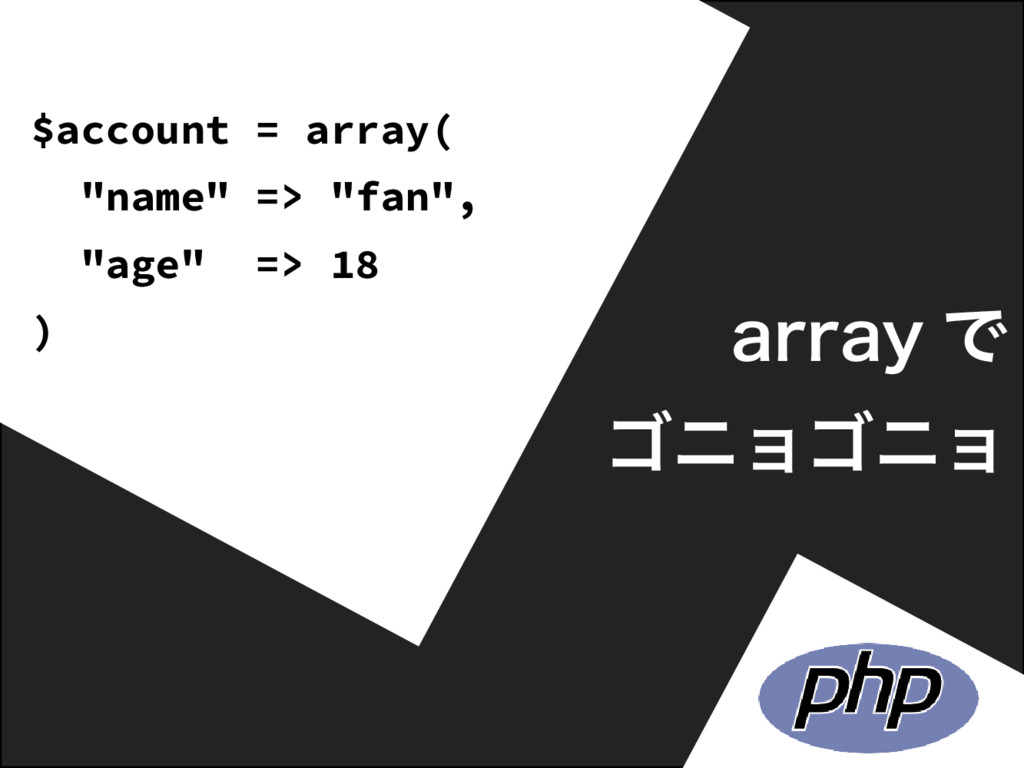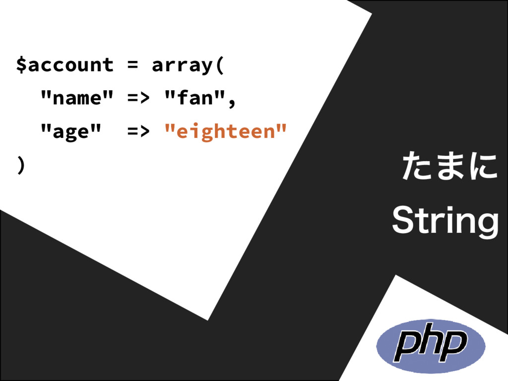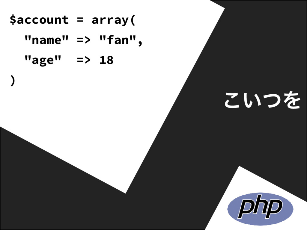 $account = array( "name" => "fan", "age" => "eighteen" )