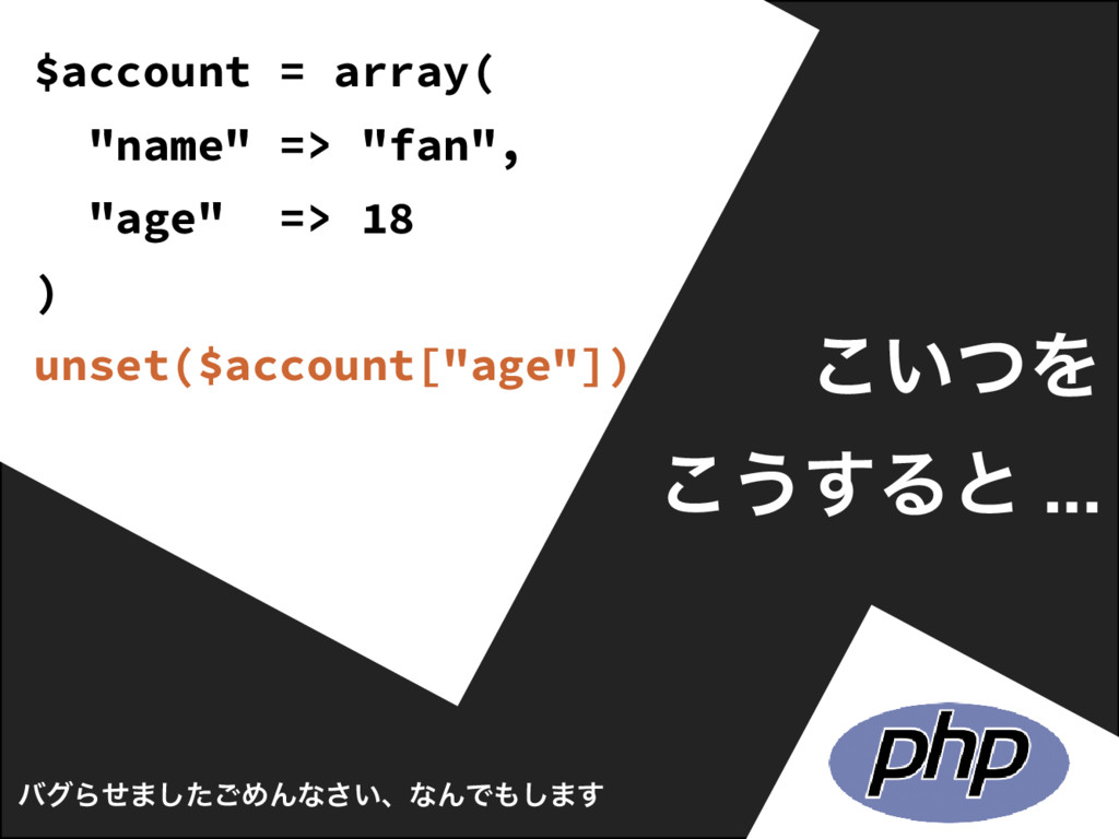 unset($account["age"]) ͍ͭ͜Λ ͜͏͢Δͱ όάΒͤ·ͨ͠͝ΊΜͳ͍͞ɺͳΜͰ͠·͢