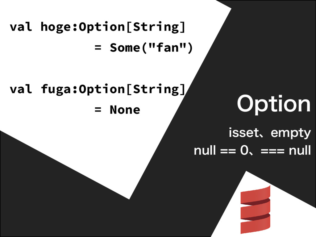val hoge:Option[String] = Some("fan") val fuga:Option[String] = None 0QUJPO JTTFUɺFNQUZ