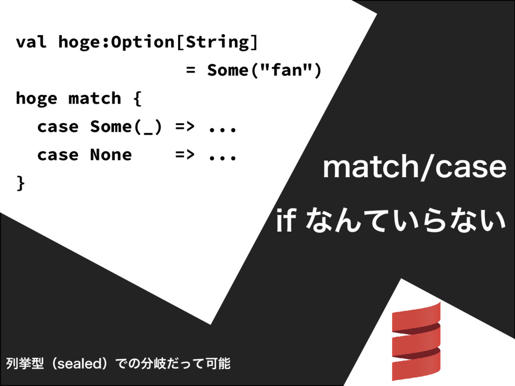 Some(_) => ... case None => ... } NBUDIDBTF JG ͳΜ͍ͯΒͳ͍ ྻڍܕʢTFBMFEʣͰͷذͩͬͯՄೳ