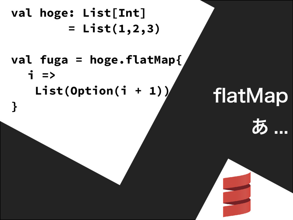 val hoge: List[Int] = List(1,2,3) val fuga = hoge.flatMap{ i