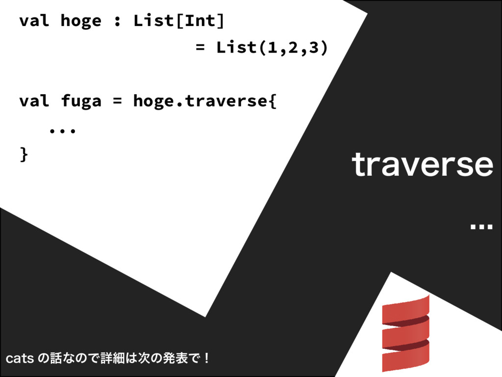 val hoge : List[Int] = List(1,2,3) val fuga = hoge.traverse{