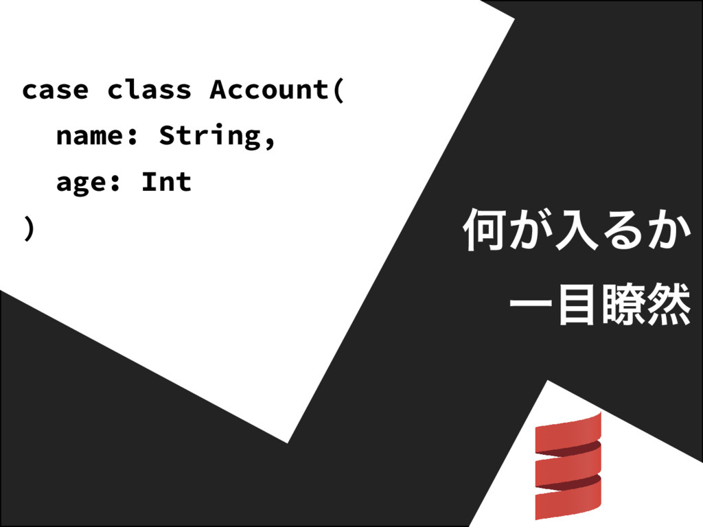 case class Account( name: String, age: Int ) Կ͕ೖΔ͔ Ұྎવ