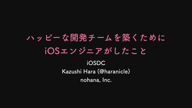 あなたの開発チームは何人いますか?みんなハッピーですか? 日々タスクが発生し続けるアプリ開発の現場で、チームメンバー全員が幸せに働けるようにするためにはどうしたらいいのか。iOSエンジニアはどうやって振る舞えばいいのか。 ノハナで実践していることをお話しします。