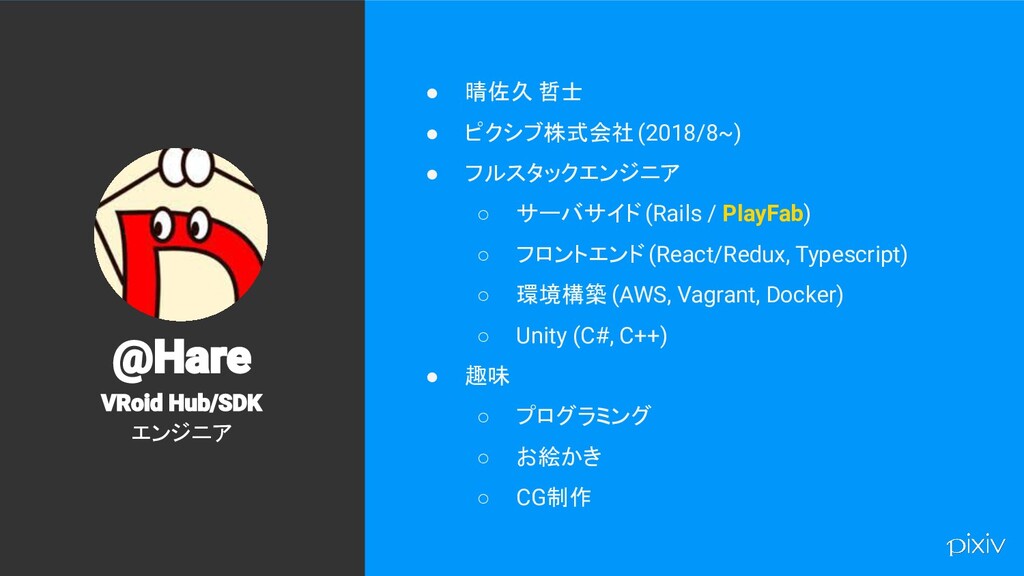 2 • 晴佐久 哲士 • ピクシブ株式会社 (2018/8~) • フルスタックエンジニア ◦
