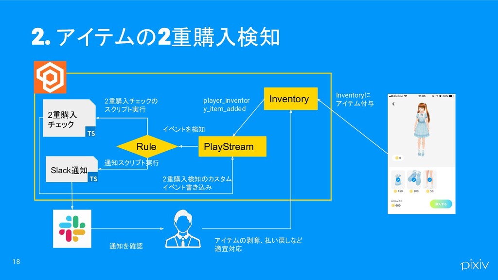 18 アイテムの 重購入検知 Inventory PlayStream Rule 2重購入 チェック Slack通知 Inventoryに