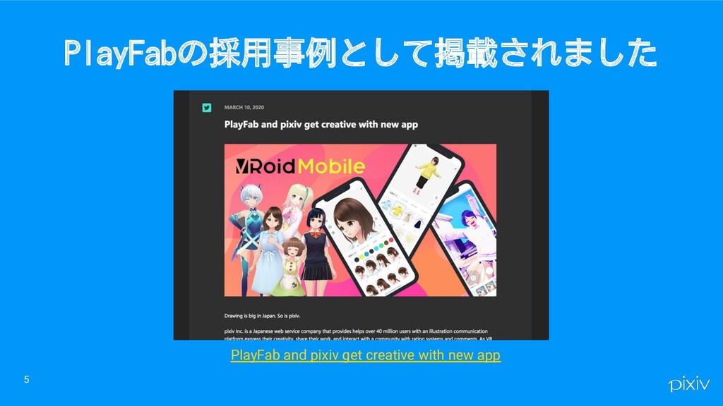 5 PlayFabの採用事例として掲載されました PlayFab and pixiv get creative with new app