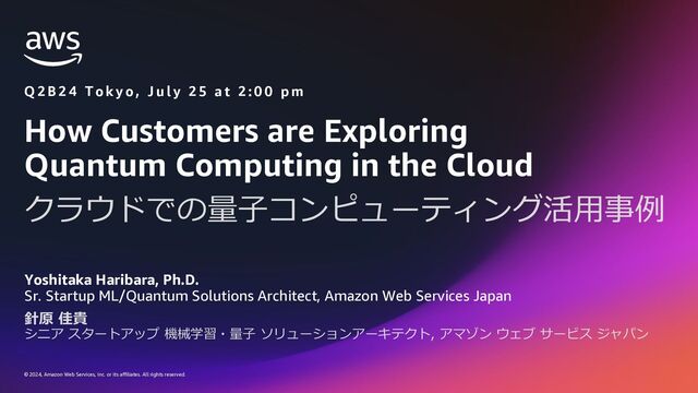 rights reserved. Customer Feedback: Availability Window Expansion お客様フィードバックにより⽇本時間のカバー率向上 10 QPU Availability in UTC Availability in JST (日本時間) IonQ Aria, Harmony Weekdays, 12:00 - 3:00 平日, 21:00 - 12:00 Rigetti Aspen-M-3 Everyday, 04:00:00 - 06:00:00 Everyday, 15:00:00 - 18:00:00 毎日, 13:00 - 15:00 毎日, 00:00 - 03:00 (翌日) IQM Garnet Monday, 08:00:00 - 10:00:00 Tuesday, 08:00:00 - 10:00:00 Wednesday, 08:00:00 - 10:00:00 Thursday, 13:00:00 - 15:00:00 Friday, 13:00:00 - 15:00:00 月曜日, 17:00:00 - 19:00:00 火曜日, 17:00:00 - 19:00:00 水曜日, 17:00:00 - 19:00:00 木曜日, 22:00:00 - 00:00:00 (金曜日) 金曜日, 22:00:00 - 00:00:00 (土曜日) QuEra Aquila Monday, 01:00:00 - 23:59:59 Tuesday, 00:00:00 - 12:00:00 Wednesday, 00:00:00 - 12:00:00 Friday, 00:00:00 - 23:59:59 Saturday, 00:00:00 - 23:59:59 Sunday, 00:00:00 - 12:00:00 月曜日, 10:00:00 - 08:59:59 (火曜日) 火曜日, 09:00:00 - 21:00:00 水曜日, 09:00:00 - 21:00:00 金曜日, 09:00:00 - 08:59:59 (土曜日) 土曜日, 09:00:00 - 08:59:59 (日曜日) 日曜日, 09:00:00 - 21:00:00