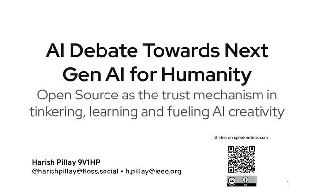 for Humanity Open Source as the trust mechanism in tinkering, learning and fueling AI creativity Harish Pillay 9V1HP @harishpillay@floss.social • [email protected] 1 Slides on speakerdeck.com