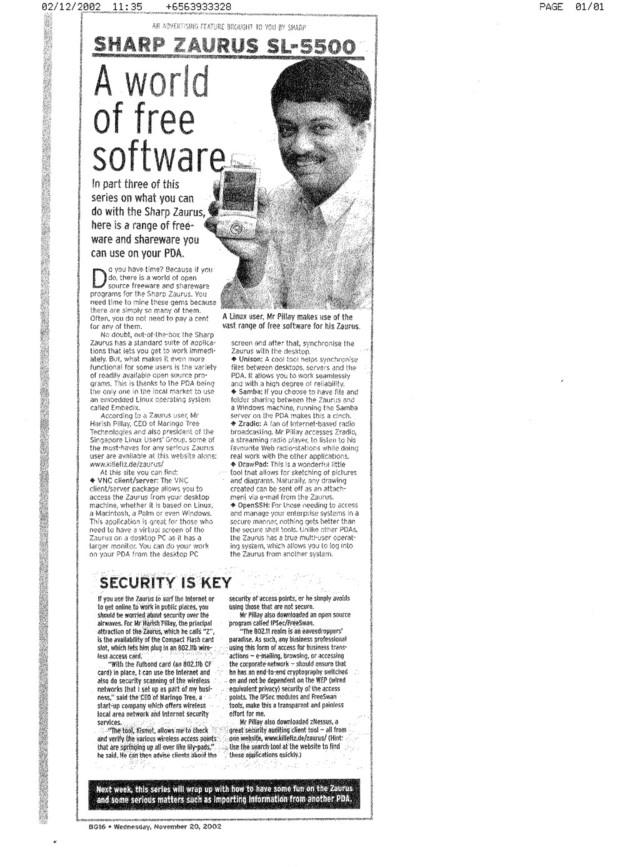 Article in Computer Times in 2002