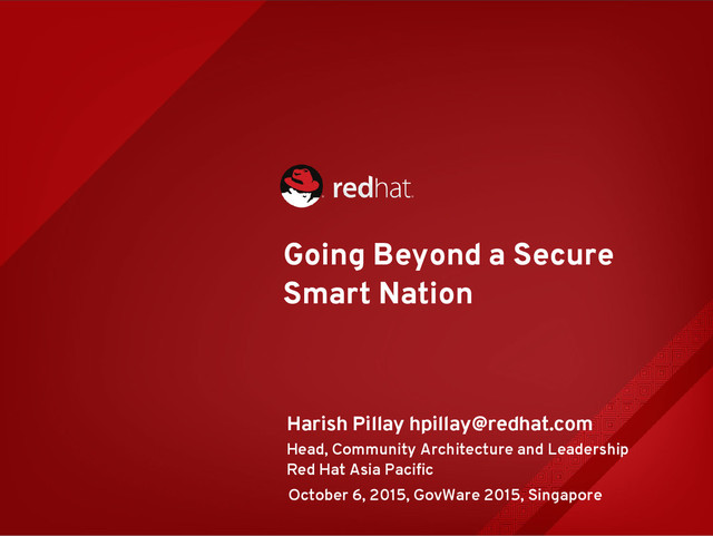Talk at GovWare.sg 2015 about the Smart Nation. This is about the need for open source priniciples to be used in creating a smart nation and the tech around it. it also discusses the need for smart energy and possibly using LFTR as a solution.