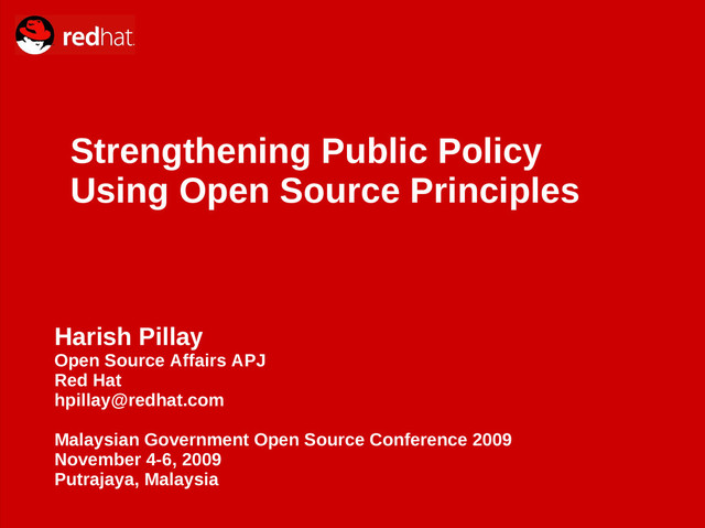 not about adoption of open source technologies in Government per se • It is not about why open source technologies are better for government (and everyone else) • What it is about is the idea that open source principles and best practises can help in the formulation and execution of public policy • Disclaimer: – I am not a public policy practitioner but I am a very keen and interested observer