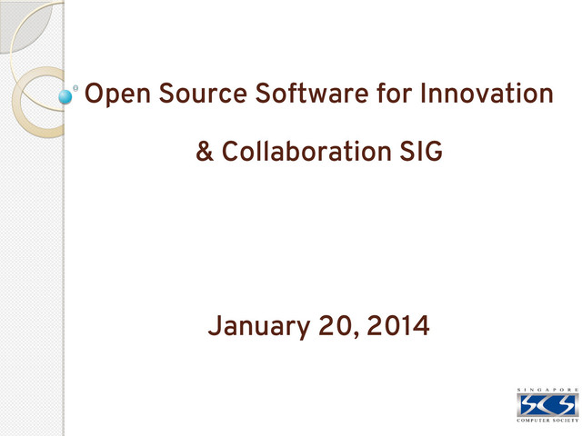 Internet of Things and Open Source (collaboration with Internet Society Singapore Chapter) Disaster Preparedness using Open Source Tools and Techniques: A hands-on seminar Talk on Security and Surveillance: Using Open Source Technologies for Highest Possible Lock Down.