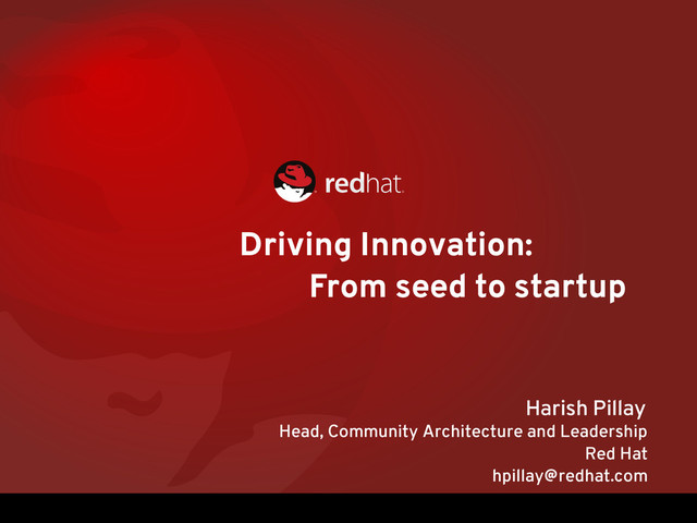 Driving Innovation: From seed to startup Harish Pillay Head, Community