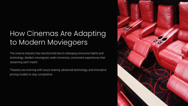 has transformed due to changing consumer habits and technology. Modern moviegoers seek immersive, convenient experiences that streaming can't match. Theaters are evolving with luxury seating, advanced technology, and innovative pricing models to stay competitive.