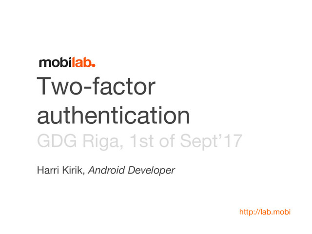 Two-factor authentication GDG Riga, 1st of Sept’17 Harri Kirik, Android