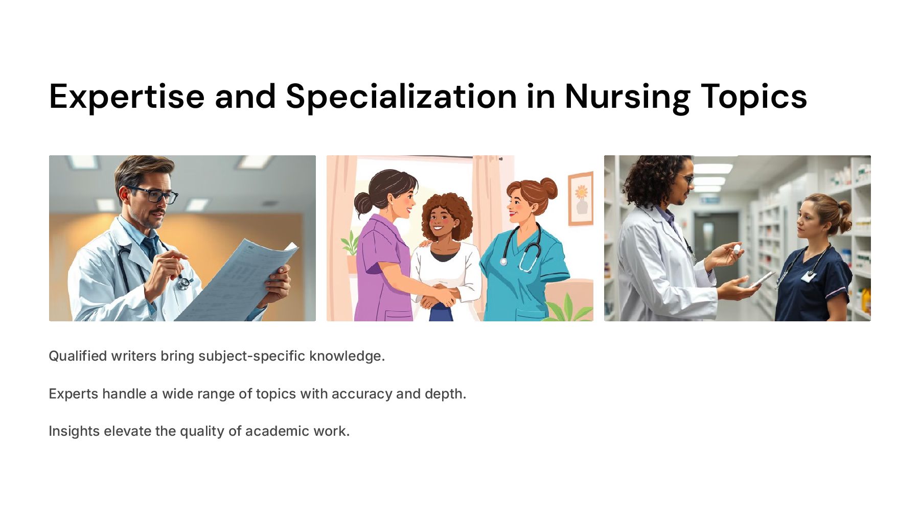 Expertise and Specialization in Nursing Topics Qualified writers bring subject-specific