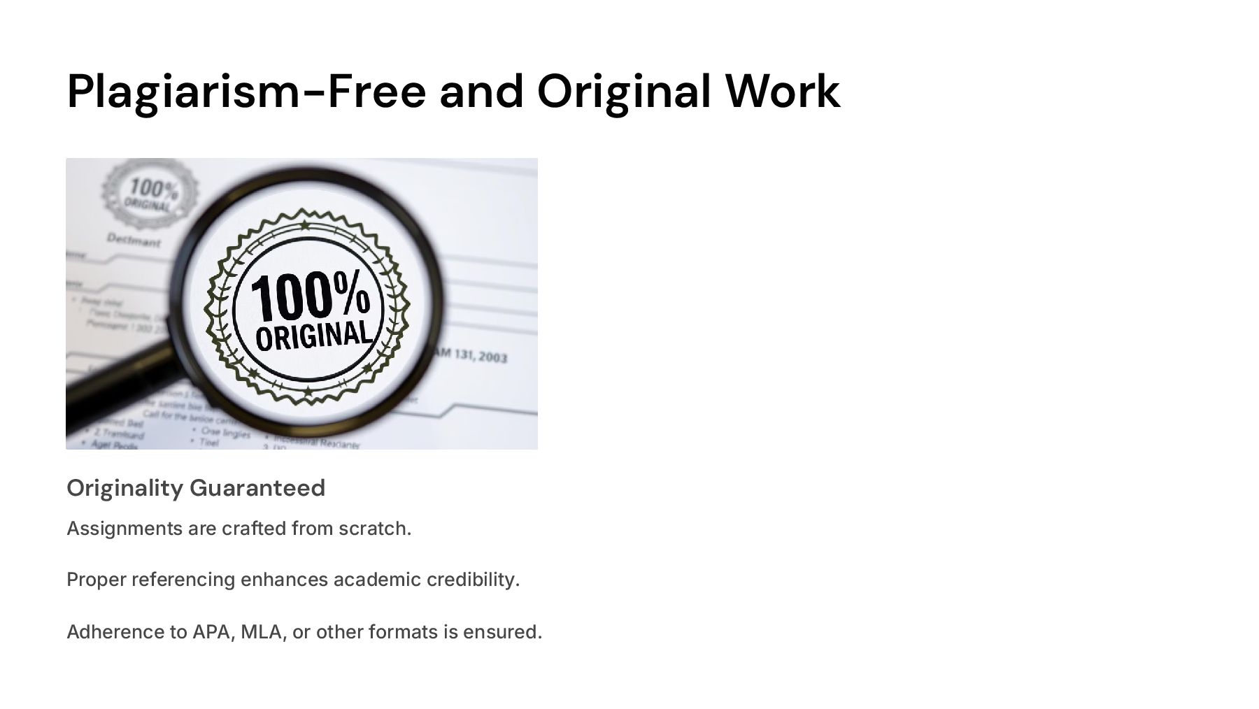 Plagiarism-Free and Original Work Originality Guaranteed Assignments are crafted from