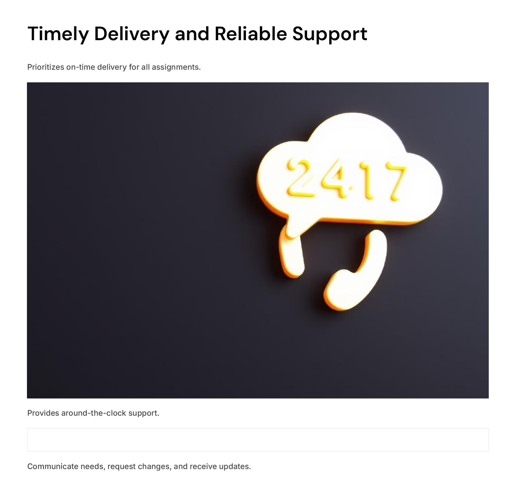 Timely Delivery and Reliable Support Prioritizes on-time delivery for all