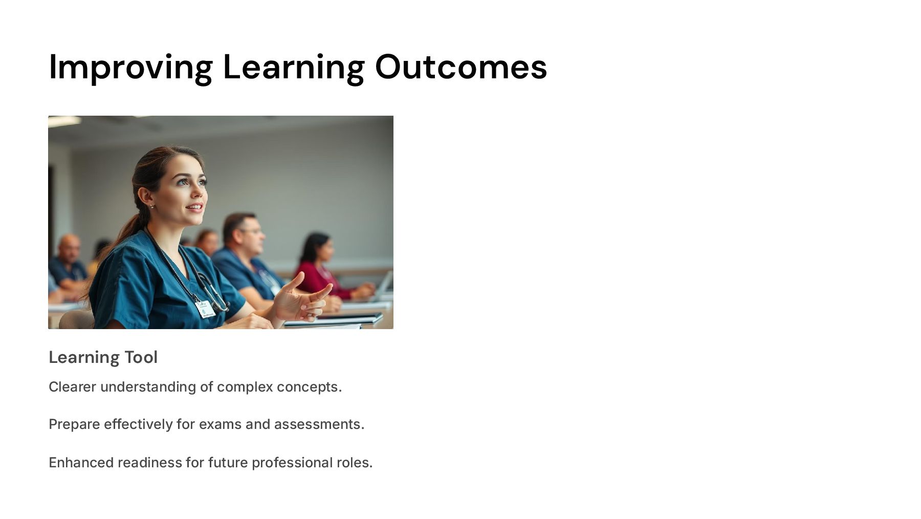 Improving Learning Outcomes Learning Tool Clearer understanding of complex concepts.