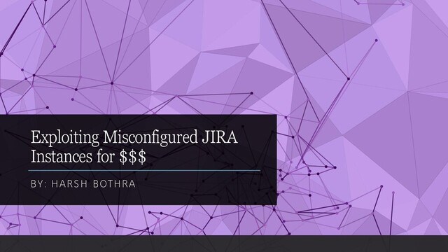 Jira is a popular issue tracking and management system. Often the custom implementation of JIRA utilizes outdated versions. These outdated versions are often known vulnerable and might have publicly available exploits. In this talk, the focus is to understand how to approach exploiting such Misconfigured JIRA Instances for easy wins.