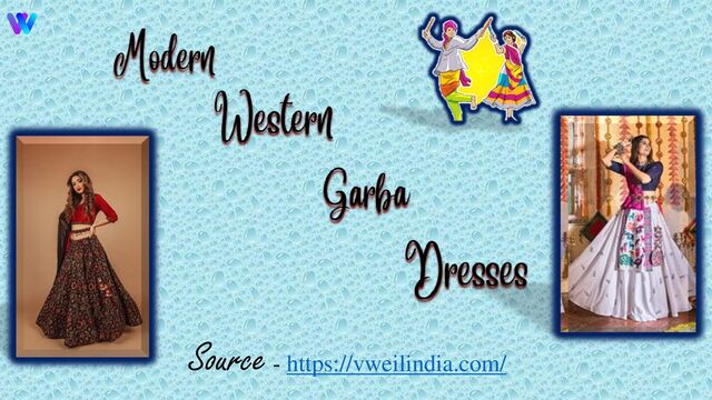 this dance has now gained popularity not only in India rather it is spreading worldwide. ❑ Garba dances celebrate fertility, honour womanhood, and pay respect to any of an array of mother goddesses. In Gujarat the dances customarily mark a girl's first menstrual cycle and, later, her imminent marriage. GarbaDress ❑ In addition to the traditional Indian Garba dress, there is also a Westernized version of the attire that is worn during Garba events in our country as well as in Western countries. ❑ This Western Garba dress is a fusion of Indian and Western fashion elements, creating a unique and contemporary look. ❑ The Western Garba dress typically consists of a fitted top or blouse, often with sleeves, and a flared skirt. ❑ The top may be embellished with sequins, beads, or embroidery to add a touch of Indian aesthetics. The skirt is usually made from lightweight and flowy fabric, allowing for easy movement during the dance.