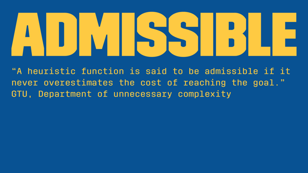 it never overestimates the cost of reaching the goal.” GTU, Department of unnecessary complexity