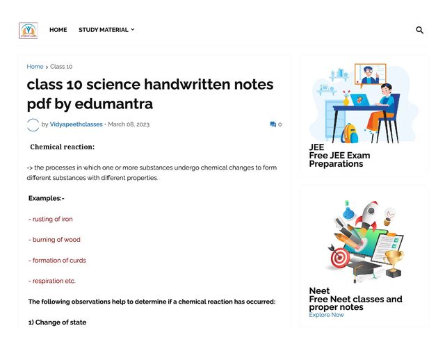 Class 10 Handwrritten Notes Chemical Reactions and Equation With helps To better Score in examination.