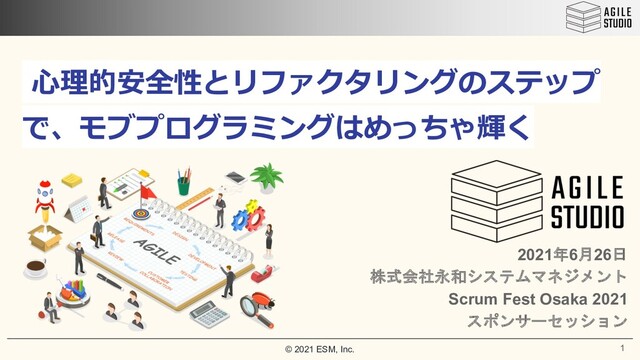 © 2021 ESM, Inc. ⼼理的安全性とリファクタリングのステップ で、モブプログラミングはめっちゃ輝く 1 2021年6月26日 株式会社永和システムマネジメント Scrum