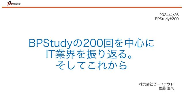 2024年4月26日に開催されたBPStudy#200〜BPStudyの200回を中心にIT業界を振り返る。そしてこれから( https://bpstudy.connpass.com/event/315006/ ) の資料です。