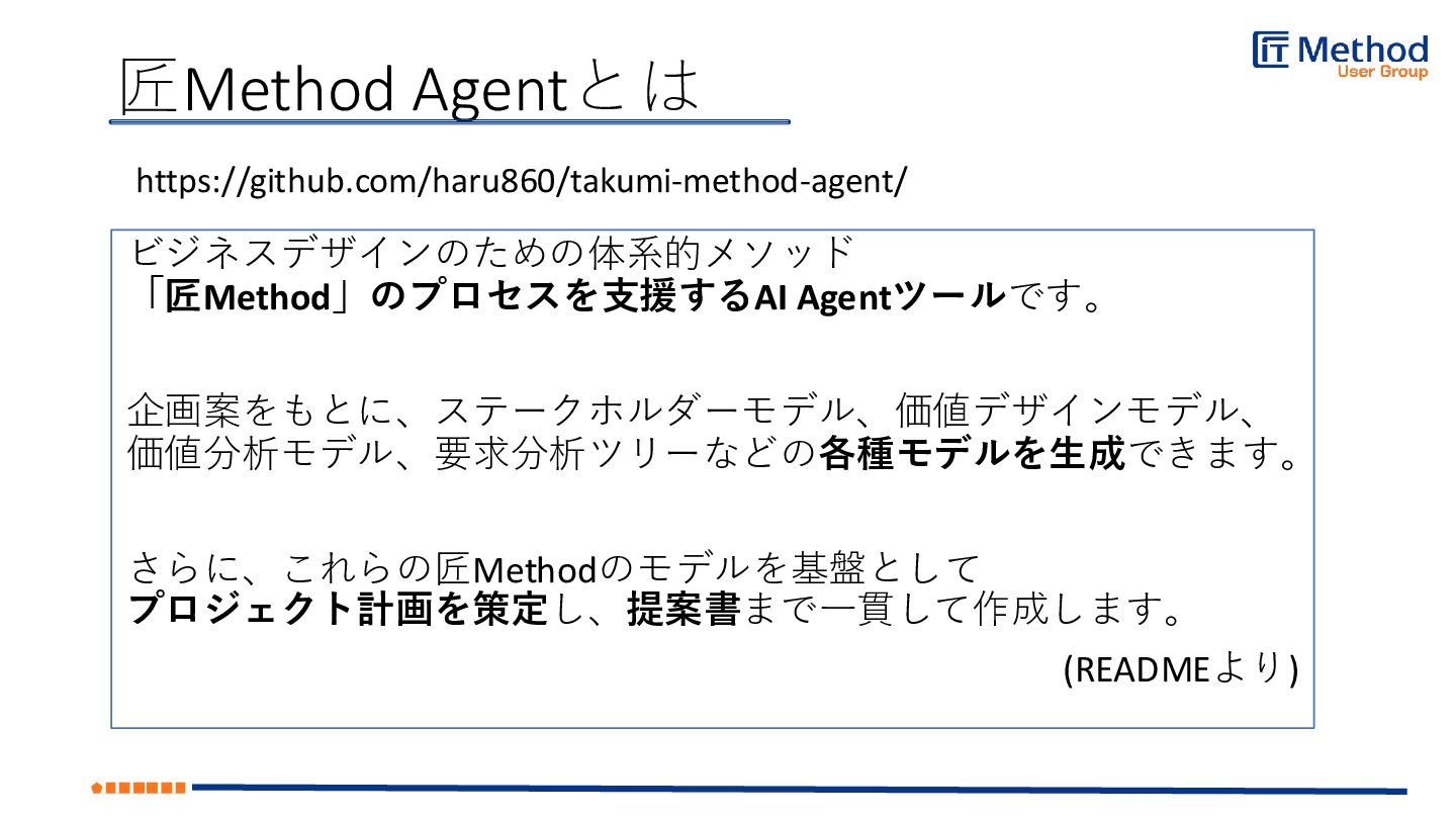https://github.com/haru860/takumi-method-agent/ を紹介しています。