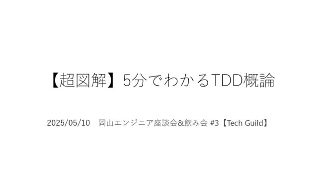 2025年のGWにt_wada本(敬称略)を読んでいい刺激を受けたので、自分なりにTDDの概論についてまとめてみました。ちなみに当日現地でLTを実施した所(僕がLT下手すぎて)一通り説明するのに20分前後掛かりました。皆さんは5分で読んでください。