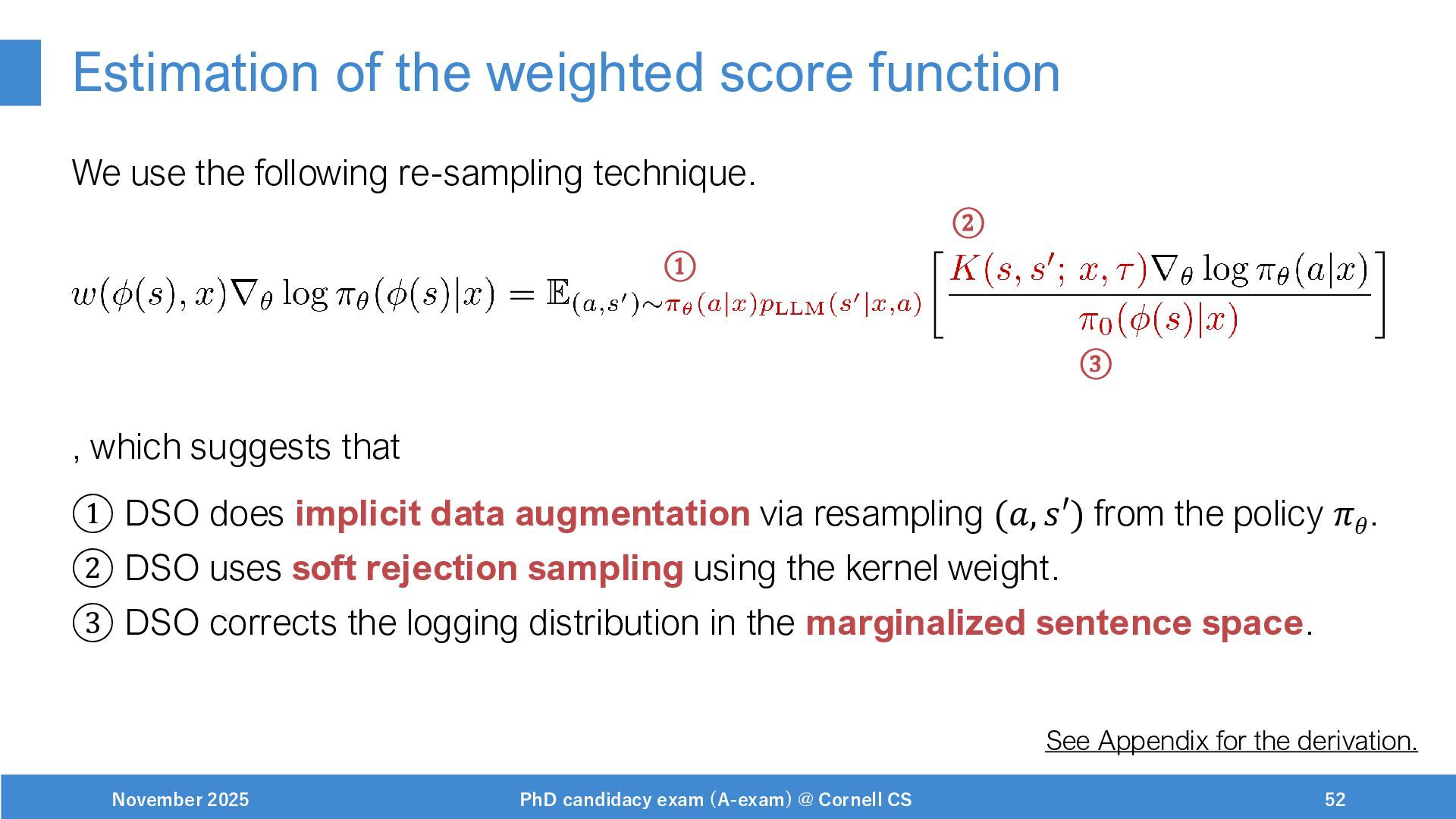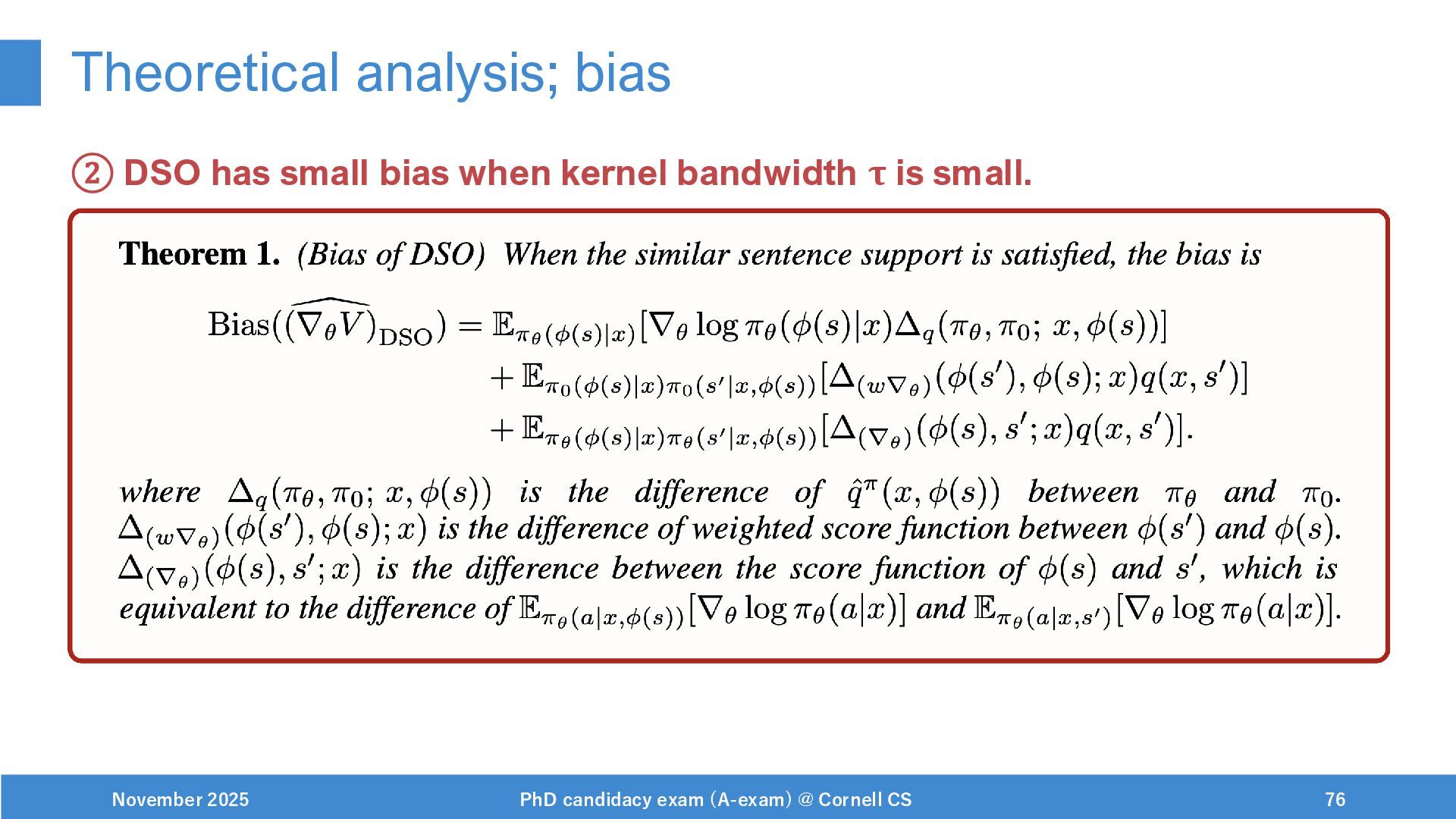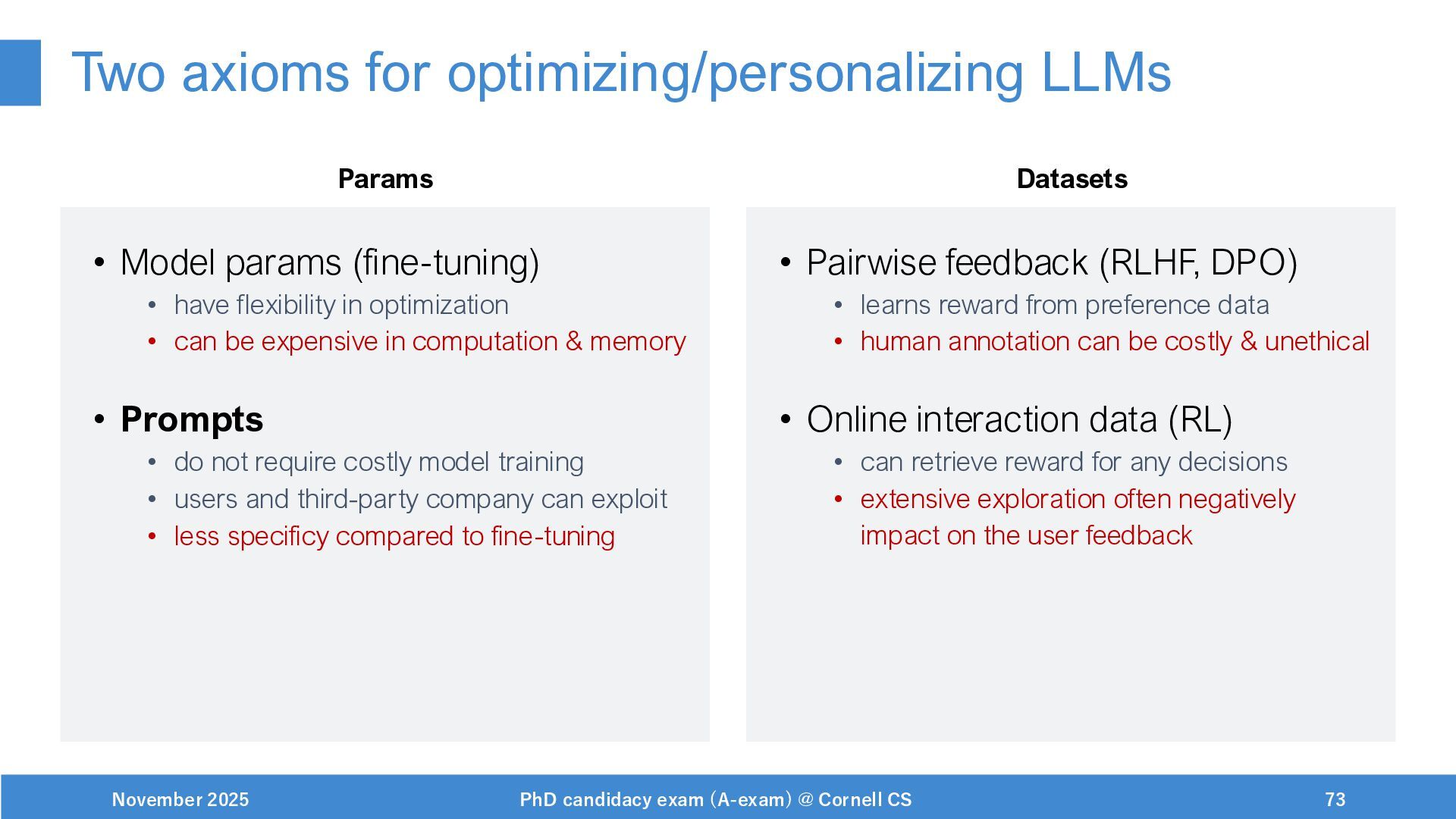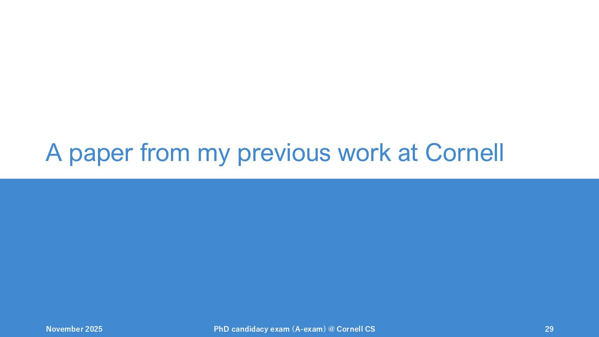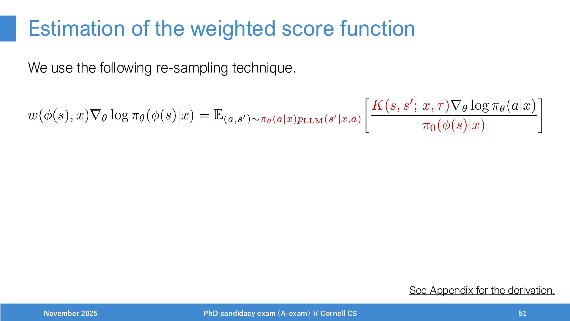 NeurIPS, 1999. [Swaminathan&Joachims,16] Adith Swaminathan and Thorsten Joachims. Batch learning from logged bandit feedback through counterfactual risk minimization. JMLR, 2016. [Dudík+,11] Miroslav Dudík, John Langford, and Lihong Li. Doubly robust policy evaluation and learning. ICML, 2011. [Saito+,24] Yuta Saito, Jihan Yao, and Thorsten Joachims. Potec: Off-policy learning for large action spaces via two-stage policy decomposition. 2024. [Brown+,20] Tom Brown, Benjamin Mann, Nick Ryder, Melanie Subbiah, Jared Kaplan, Prafulla Dhariwal, Arvind Neelakantan, Pranav Shyam, Girish Sastry, Amanda Askell, Sandhini Agarwal, Ariel Herbert-Voss, Gretchen Krueger, Tom Henighan, Rewon Child, Aditya Ramesh, Daniel M. Ziegler, Jeffrey Wu, Clemens Winter, Christopher Hesse, Mark Chen, Eric Sigler, Mateusz Litwin, Scott Gray, Benjamin Chess, Jack Clark, Christopher Berner, Sam McCandlish, Alec Radford, Ilya Sutskever, and Dario Amodei. Language models are few-shot learners. NeurIPS, 2020. November 2025 PhD candidacy exam (A-exam) @ Cornell CS 100