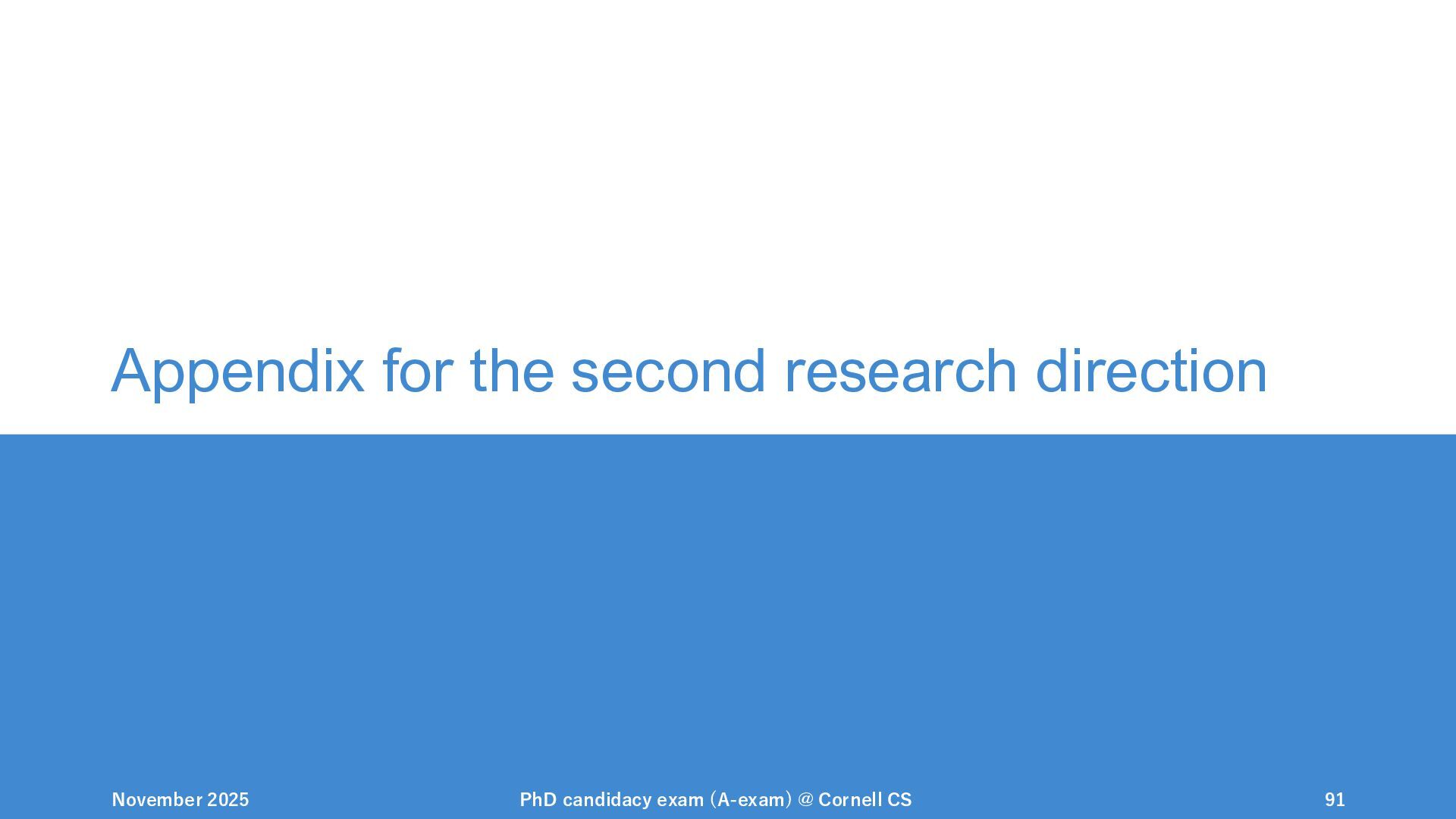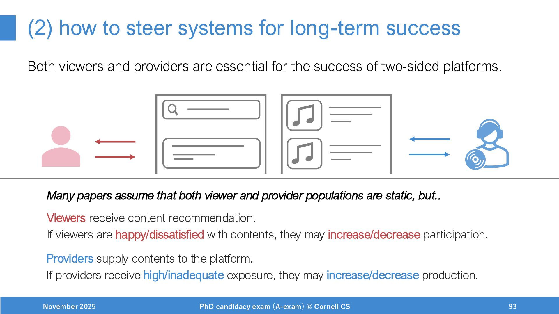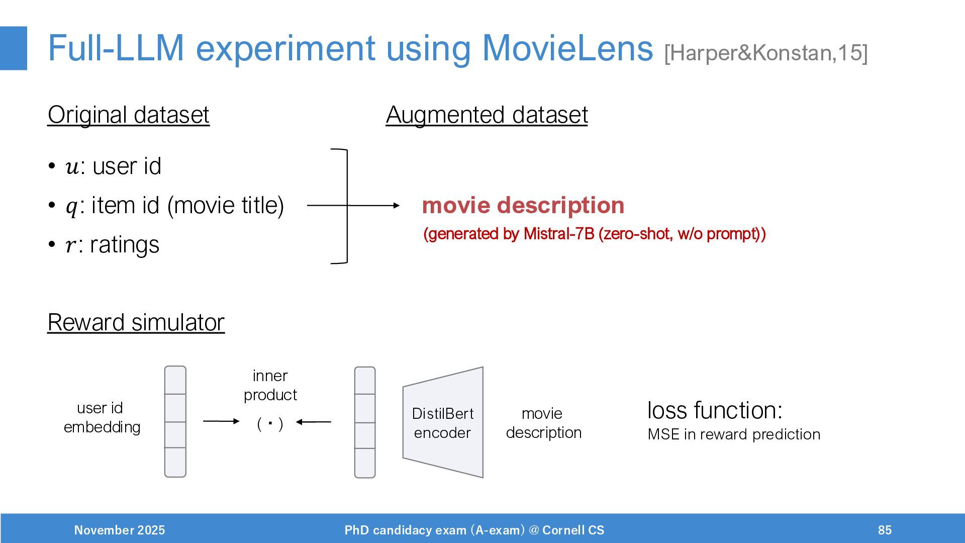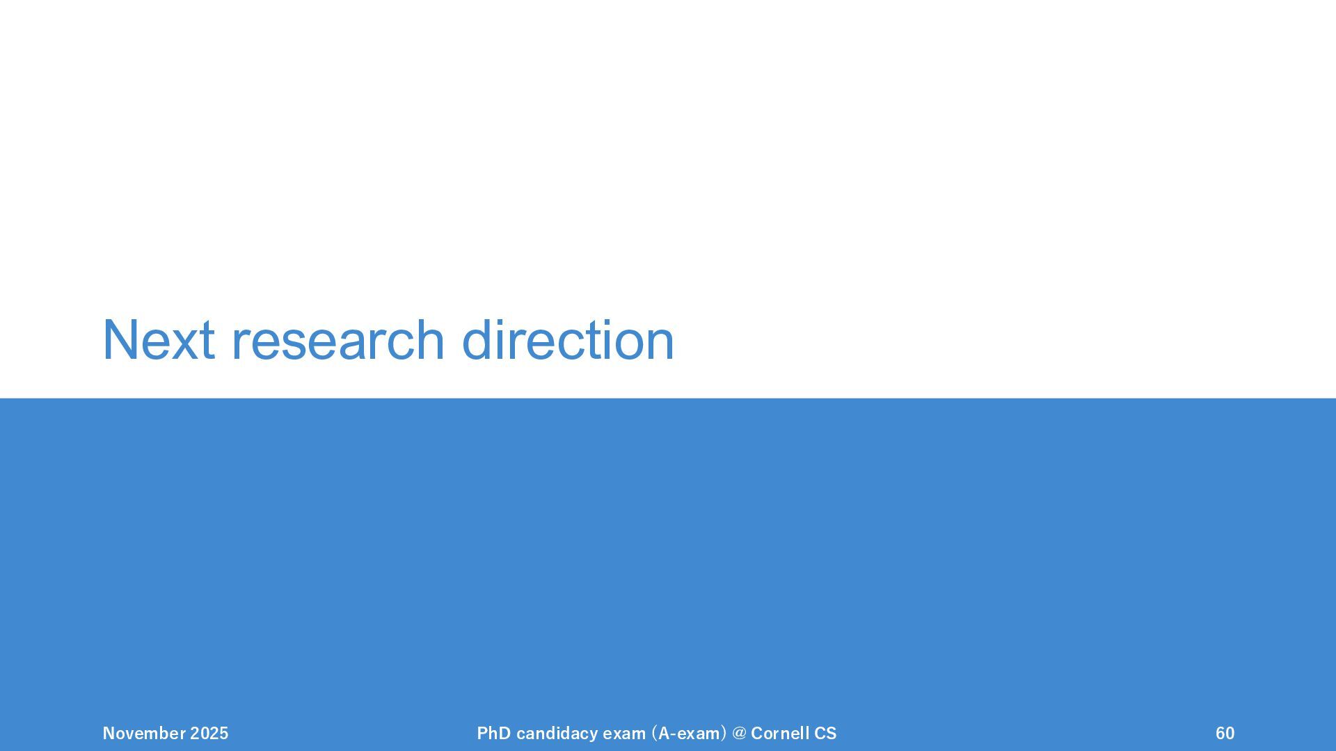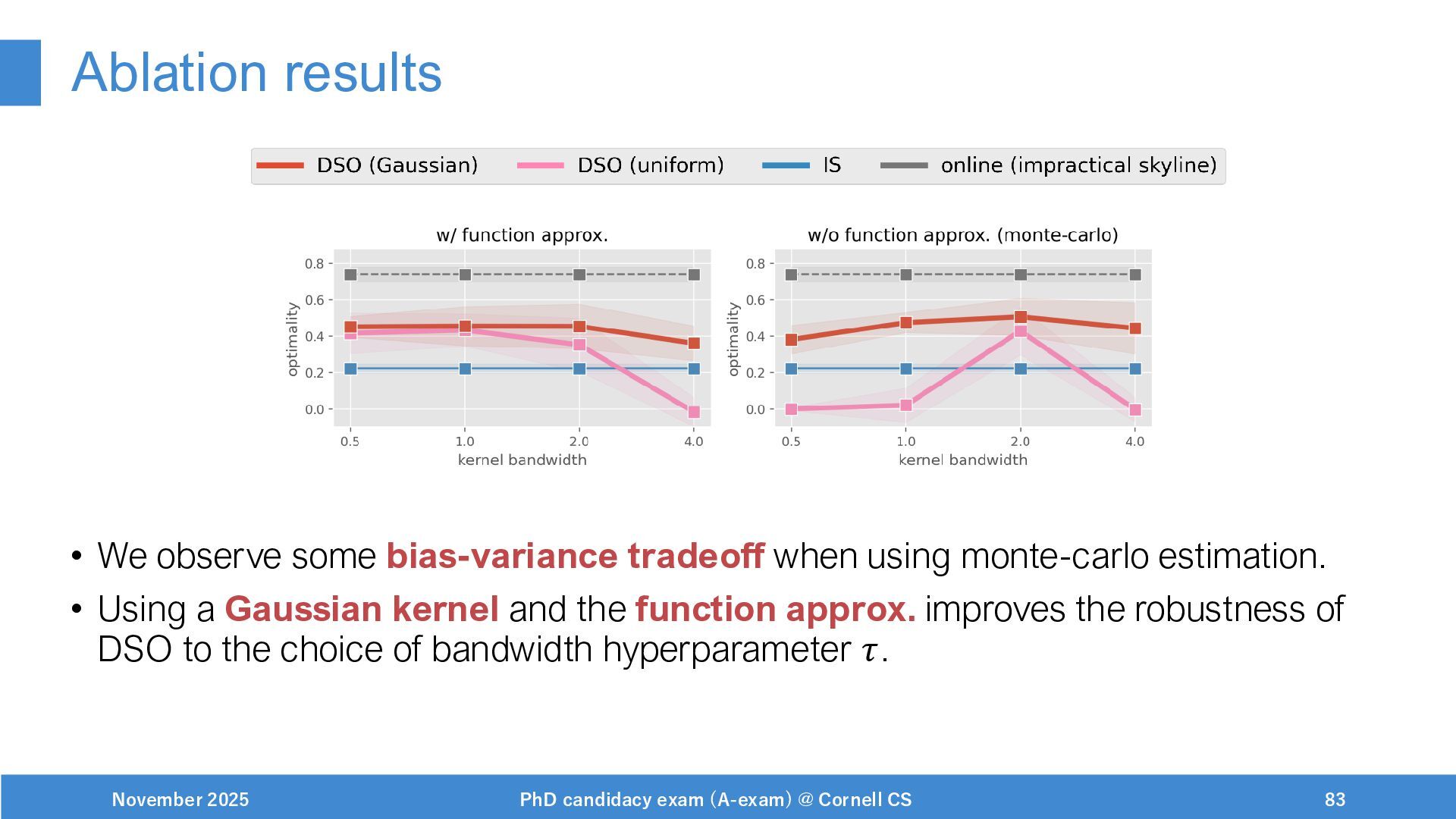 NeurIPS, 1999. [Swaminathan&Joachims,16] Adith Swaminathan and Thorsten Joachims. Batch learning from logged bandit feedback through counterfactual risk minimization. JMLR, 2016. [Dudík+,11] Miroslav Dudík, John Langford, and Lihong Li. Doubly robust policy evaluation and learning. ICML, 2011. [Saito+,24] Yuta Saito, Jihan Yao, and Thorsten Joachims. Potec: Off-policy learning for large action spaces via two-stage policy decomposition. 2024. [Brown+,20] Tom Brown, Benjamin Mann, Nick Ryder, Melanie Subbiah, Jared Kaplan, Prafulla Dhariwal, Arvind Neelakantan, Pranav Shyam, Girish Sastry, Amanda Askell, Sandhini Agarwal, Ariel Herbert-Voss, Gretchen Krueger, Tom Henighan, Rewon Child, Aditya Ramesh, Daniel M. Ziegler, Jeffrey Wu, Clemens Winter, Christopher Hesse, Mark Chen, Eric Sigler, Mateusz Litwin, Scott Gray, Benjamin Chess, Jack Clark, Christopher Berner, Sam McCandlish, Alec Radford, Ilya Sutskever, and Dario Amodei. Language models are few-shot learners. NeurIPS, 2020. November 2025 PhD candidacy exam (A-exam) @ Cornell CS 100